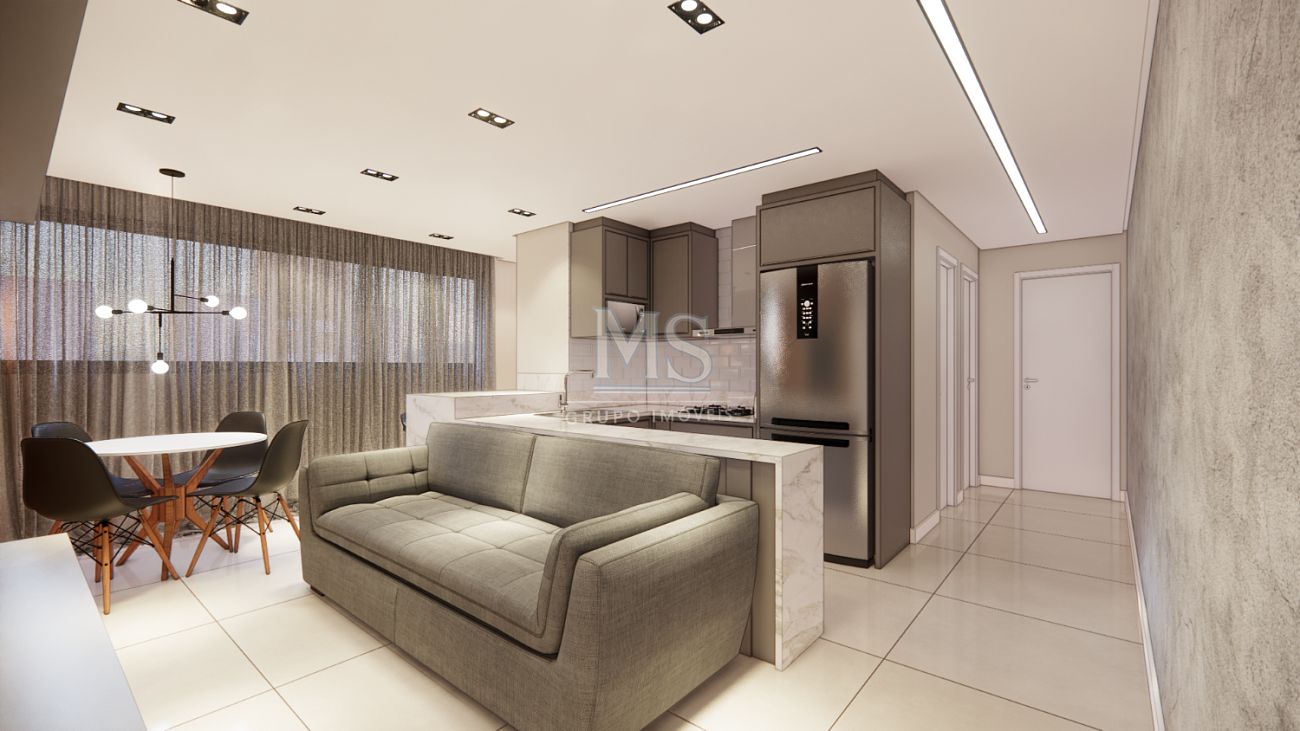 As unidades contam com duas suítes, um lavabo, totalizando três banheiros, sala e cozinha integradas, churrasqueira privativa e uma vaga de garagem. Um projeto moderno, ideal tanto para moradia quanto para investimento.