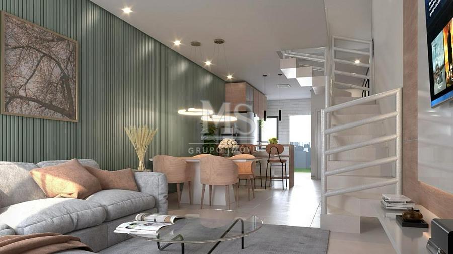 Sobrado geminado com 71 m² de área construída, ideal para quem busca um imóvel moderno, bem localizado e com excelente padrão de acabamento. O imóvel possui duas suítes, sendo uma com sacada privativa, sala de estar, cozinha integrada, lavabo no térreo e uma vaga de garagem com pergolado.